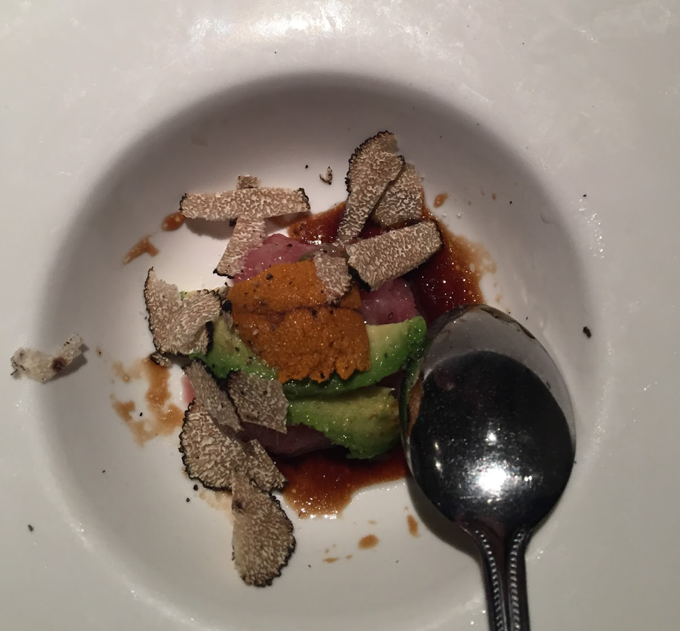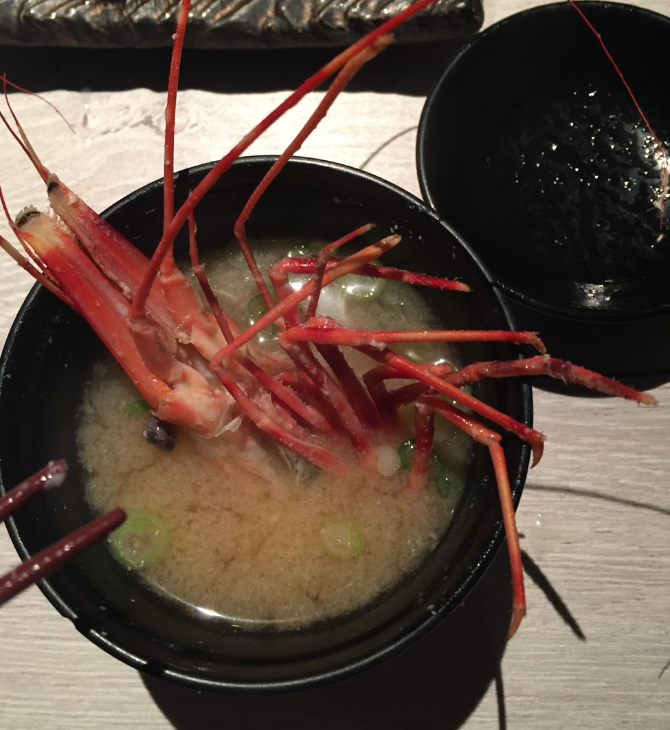 This dish was a Kobe beef tartare with avocado and uni to top it off. The chef personally delivered this dish our table, with a piece of truffle and grater in hand. As he generously shaved the pieces of truffle onto our dishes, the chef that at that current time in the market, truffles were priced at $1200/pound! He also talked about how truffles do not taste like anything to him, but the smell of the truffles is what matters in a dish. He was right, as the smell of the truffles truly rounded out this dish. After this dish, we were positively full. We also thought that we were pretty much at the end of our Omakase experience. However, to our delight, a few more dishes followed! He was served his deep-fried shrimp head, which he surprisingly loved. The servers told us ahead of time that my shrimp head soup will be my last course, while he would be served his deep-fried shrimp head first. I tried some of the deep-fried shrimp head, and the batter that it was dipped and fried in was very well-seasoned and very delicious, that no additional sauce was required.