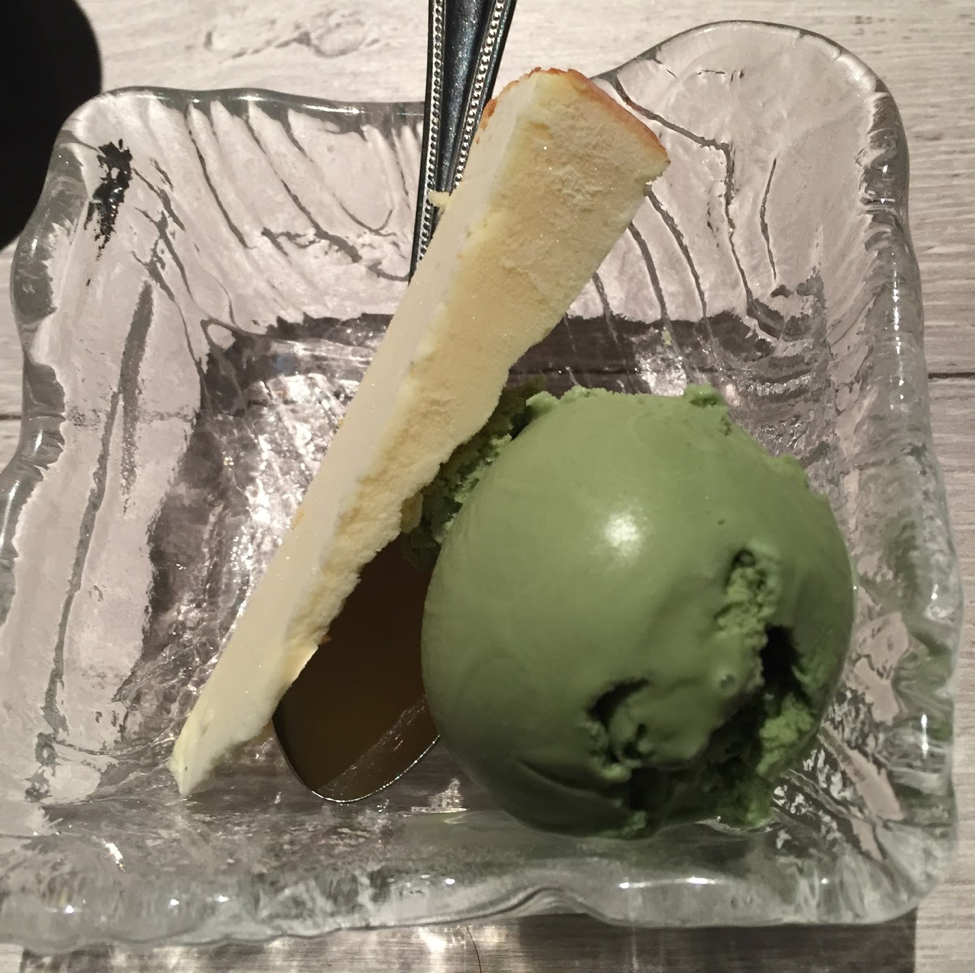 Surprise! We were not expecting dessert to be included in the Omakase. I believe that was a slice of the buttery, Japanese cheesecake that I was familiar with, having had similar tasting ones throughout my years in Singapore. Look at that scoop of matcha ice cream! That was the smoothest ice cream we have had! You can observe the glossiness of the ice cream in the picture. I finished my cheesecake first because I wanted to savor the ice cream on its own. The cheesecake and the ice cream did go very well together, though.